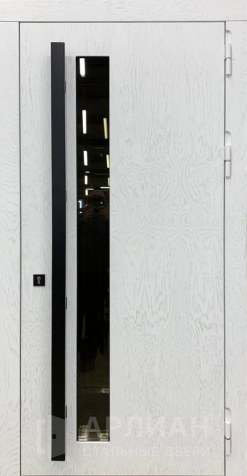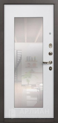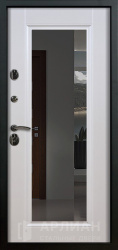 Белая входная дверь с зеркалом с повышенной звукоизоляцией и темной фурнитурой снаружи №21