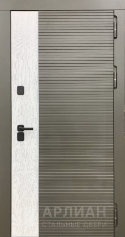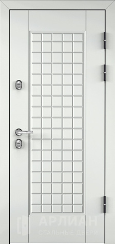 Входная белая дверь с отделкой "волна" с верхним и нижним замками №16