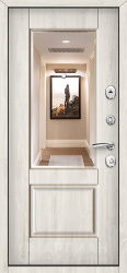 Белая дверь из толстого металла с декоративной вставкой №4