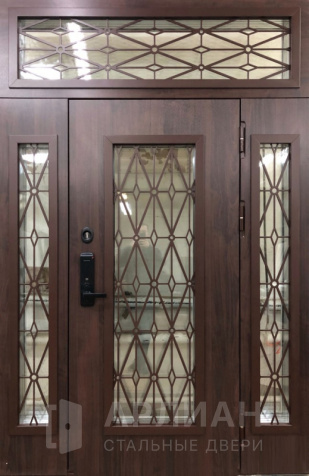 Металлическая входная дверь в коттедж с верхней фрамугой №10