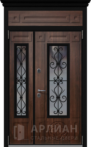 Двустворчатая дверь со стеклом и кованной решеткой №2