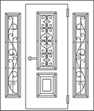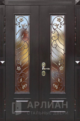 Фото «Двухстворчатая входная дверь со стеклом и ковкой №9»