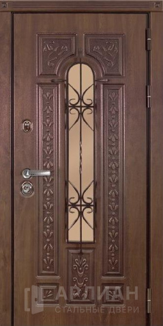 Утепленная входная дверь для коттеджа с кованными элементами №28