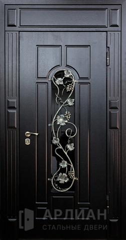 Двустворчатая дверь со стеклом и кованной решеткой №2