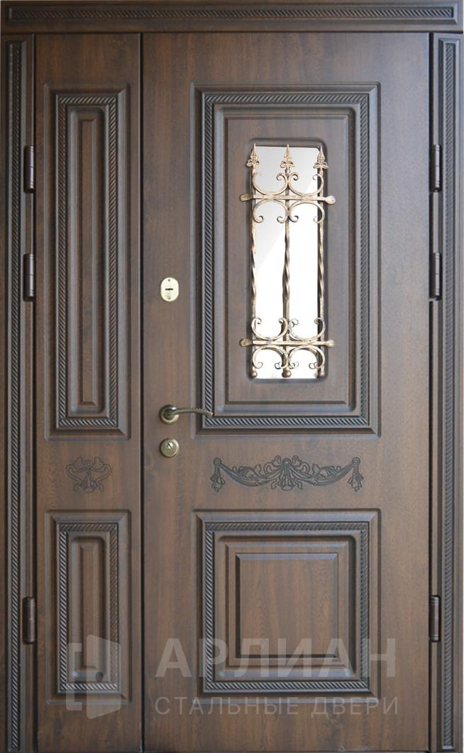 Парадная дверь с золотой патиной и фрамугой №408