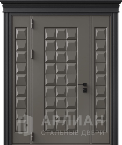 Металлическая входная дверь в коттедж с верхней фрамугой №10